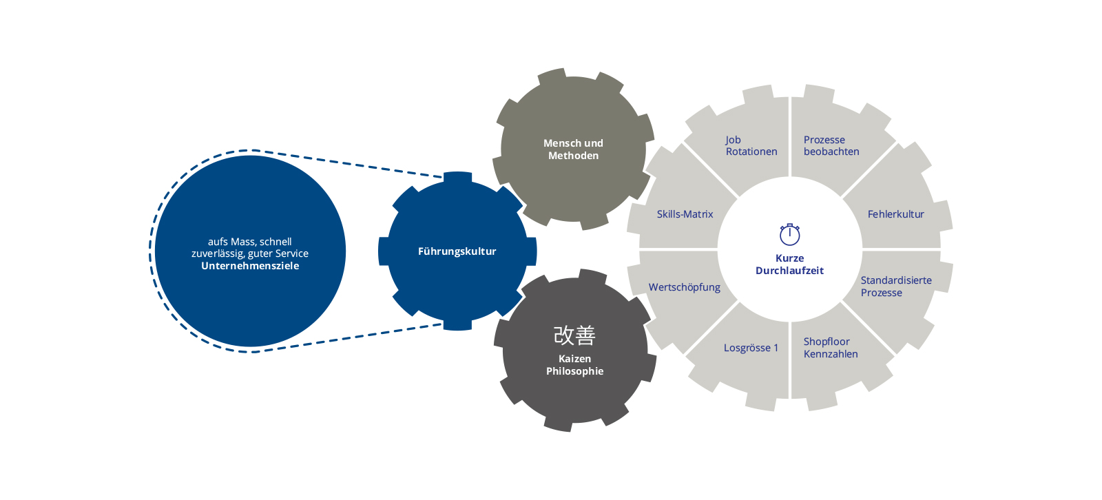 Unser Werk liegt zwar von Alpen umringt im Herzen der Schweiz, doch unser Horizont reicht bis ans Ende der Welt. Das beweist die Japanische Kaizen-Philosophie, nach der wir konsequent arbeiten. «Kaizen» bedeutet so viel wie «Veränderung zum Besseren». Danach haben wir unsere eigene Firmenphilosophie entwickelt: Wir nennen sie SchmidLEAN.
